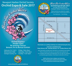 Ride the Orchid Wave! Orchid Displays Vendor Sales Re-potting Classes Botanic Art & Bonsai Exhibit February 10, 11 & 12 Westminster Mall Orange County, CA Friday: 10 am - 9 pm Saturday: 10 am - 9 pm Sunday: 11 am - 6 pm