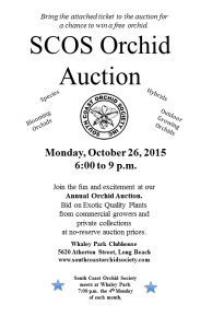 South Coast Orchid Society Join the fun and excitement at our Annual Orchid Auction. Bid on Exotic Quality Plants from commercial growers and private collections at no-reserve auction prices.